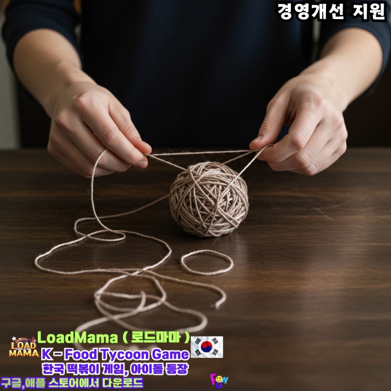 희망리턴패키지 경영개선 지원 전문가가 꼬인 실을 풀어주고 있는 장면